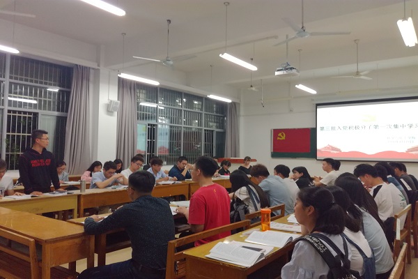 集中学习和集中讨论,由该院党校班主任朱文拿老师负责组织和指导,并由党员们带领学习。班主任老师从思想和行为两个方面向同学们提出了作为新时代大学生党校学员的要求,希望全体学员坚持学习贯彻习近平新时代中国特色社会主义思想,从多方面多角度多途径学习党建相关知识,牢牢树立政治意识、大局意识、核心意识、看齐意识。