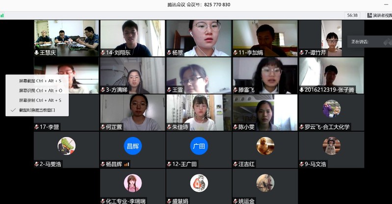 为了规范优秀毕业设计(论文)的遴选程序,确保优秀毕业设计(论文)的质量,结合学校和学院修订的本科毕业设计(论文)实施细则,学院教学指导委员会组织了此次学院优秀毕业设计(论文)答辩。我院2020届优秀毕业设计(论文)线上答辩于2020年6月2日下午14:00如期举行。答辩采用腾讯会议平台进行。答辩分为三个小组。第一小组由宣城校区能化系主任张茂峰老师担任组长,由史成武教授、叶同奇副教授担任评委;第二小组由高分子系主任何涛老师担任组长,由罗云飞教授、姚运金教授担任评委;第三小组由化工工艺系主任张大伟老师担任组长,由朱元元教授、郭振国副教授担任评委。