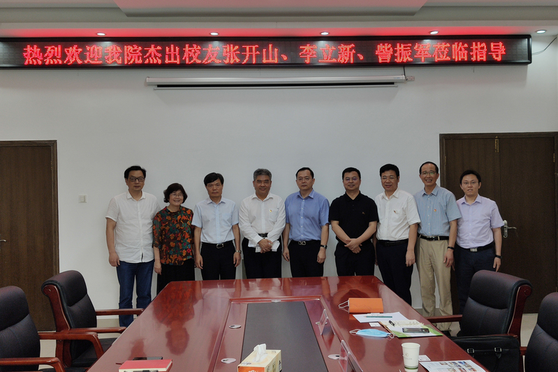7月1日下午,3522vip浦京集团杰出校友杭州华得森生物技术有限公司董事长张开山、东华工程科技股份有限公司副总经理李立新、杭州启明医疗器械股份有限公司訾振军总经理一行3人来校访问。校党委常委、副校长刘晓平,组织部部长蒋传东接见了3位校友并与校友合影留念,学院领导、系主任及部分教师代表参加座谈交流。