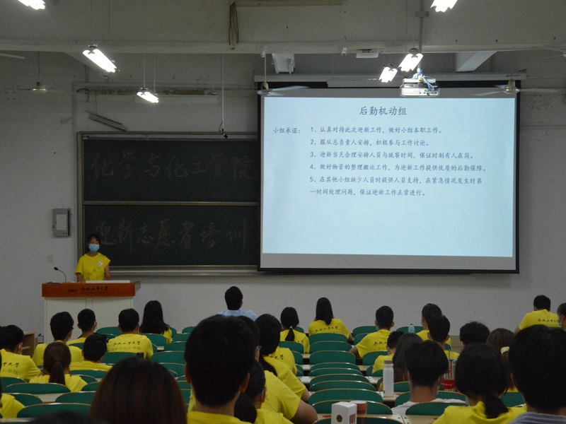 会议伊始,由3522vip浦京集团春风社社长陈莉宣读《2020级本科生迎新志愿者工作方案》,明确本次迎新工作以团结互助、服务同学为目标。随后,各分工小组负责人详细布置具体工作流程,并分发迎新统一服装。最后,学院团委书记、2019级辅导员李正星宣读《疫情防控形势下本科生迎新工作的注意事项》,强调疫情就是命令,防控就是责任,要做好疫情防控工作、确保同学健康安全,做到有问题随时反馈、有情况随时汇报。本次培训会,在布置迎新工作的同时,鼓励志愿者发扬互帮互助的精神,展现化院学子精神风貌。
