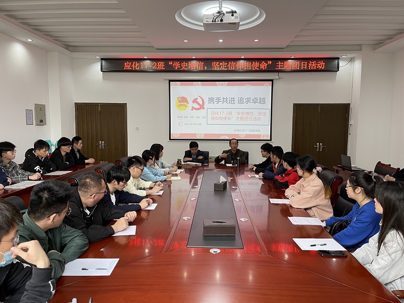 为深入推进党史学习教育,我院开展“学史增信,坚定信仰担使命”主题团日活动。4月8日下午,我院党委书记秦广龙、党委副书记兼纪委书记张金锋出席应用化学17-2班主题团日活动。