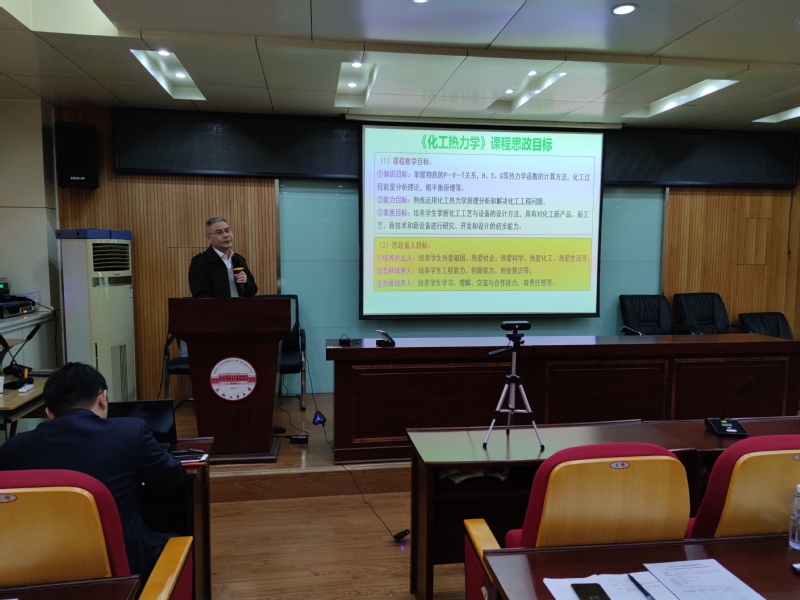 常务副院长陆杨首先对我院课程思政工作进行了总结和布置,强调了课程思政的重要性和必要性,号召全院教师利用本次会议机会加强学习和交流,提高我院课程思政整体水平。魏凤玉教授和韩效钊教授分别做了题为《目标导向的化工原理课程思政教学设计与实践》和《化学热力学课程思政》的经验交流报告,与全院教师分享了《化工原理》和《化学热力学》教学团队在课程思政建设方面的经验。随后,贾良元等9位老师或通过讲授方式、或通过说课方式,或通过说课+讲授方式向大家汇报了我院拟申报2021全国高等学校化工类优秀课程思政案例。魏凤玉、韩效钊等教授现场对汇报的课程思政案例进行了点评并和部分老师进行了交流。