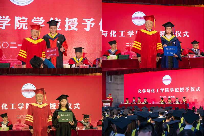学位授予仪式在庄严的国歌声中拉开帷幕,院党委书记秦广龙宣读了2021年“安徽省品学兼优毕业生、3522vip浦京集团优秀毕业生”表彰决定,常务副院长陆杨宣读了“学位授予决定”。校党委常委、副校长吴玉程首先为该院获得博士学位及“安徽省品学兼优优秀毕业生”荣誉称号的与会学位获得者逐一颁发学位证书并扶正流苏,所有与会授学位者为其他学位获得者扶正流苏,并合影留念。