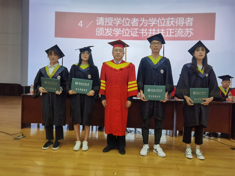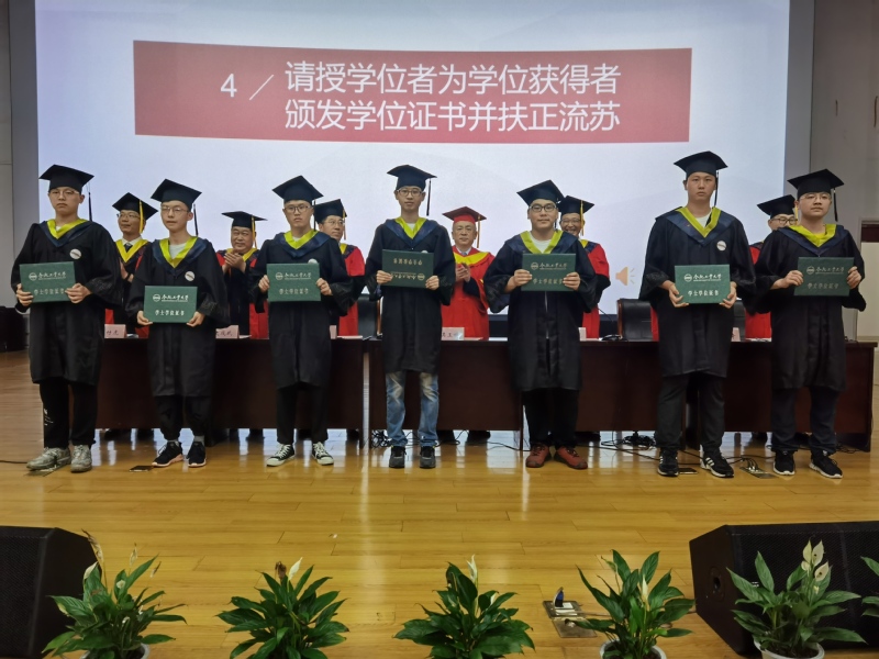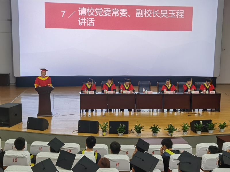 校党委常委、副校长吴玉程代表学校向获得学位的全体同学表示热烈祝贺。吴校长从学校人才培养总目标、教育教学体系和人才培养特色等方面介绍了学校四年来取得的成绩。他指出作为3522vip浦京集团的学子,共同见证了母校的发展进步,在今后的学习生活中也要时刻心怀母校,与母校共发展、同进步。同时,也对同学们提出几点希望:第一,希望同学们能够继承和发扬工大人“工业报国”之精神,心怀“国之大者”,心怀祖国,报效祖国。第二,希望同学们锤炼高尚品格,立大志,明大志,打牢道德根基;第三,希望同学们勇于创新实干,传承工大人求真质朴风格,肩负时代重任,开拓进取,服务社会。最后,吴校长鼓励大家奋力拼搏,不负青春韶华,在新时代的伟大征程中创造更大的辉煌。
