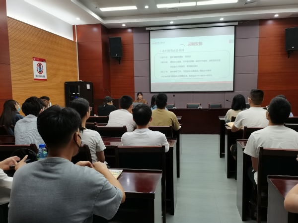 为确保迎新工作顺利开展,8月25日,学院在翡翠科教楼第五会议室开展2021级本科生迎新志愿者培训会。会上,院团委副书记、2020级辅导员房虹姣对学院迎新志愿者工作进行了布置,强调了迎新制度要求,说明了相关注意事项,她强调,学院迎新工作需要严格执行学校疫情防控相关要求,确保同学们的健康安全,鼓励志愿者在服务中尽职尽责,热情大方,充分展现化工学子的精神风貌。会后,全体迎新志愿者分工协作,完成了新生报到材料领取、采购、分装,迎新现场布置、迎新文化产品制作发布等工作。