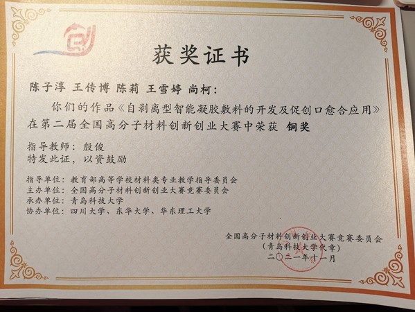 我院学子在第二届全国高分子材料创新创业大赛中取得佳绩