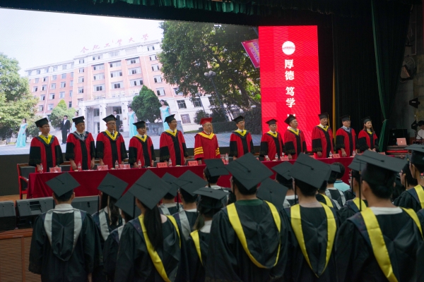校党委常委、副校长吴玉程代表学校向圆满完成学业并顺利获得学位的毕业生表示热烈的祝贺,向关心、支持学生完成学业的老师、学生家长表示衷心的感谢。他希望各位同学步伐坚定,树立崇高理想,立大志、成大才,努力成长为可堪大用、能担重任的时代新人,自觉听从党和人民召唤,胸怀“国之大者”,担当使命任务,到新时代新天地中去施展抱负、建功立业,争当伟大理想的追梦人,争做伟大事业的生力军,让青春在祖国和人民最需要的地方绽放绚丽之花;不负时光,坚持实干创新,发扬工大传统,勇担时代重任,牢记报国初心,涵养创新活力,把个人理想融入国家发展伟业,让创新成为青春远航的动力;笃行不怠,保持从容乐观,培养终身学习的好习惯,学会辩证思考,用敏锐的眼光观察社会,用清醒的头脑思考人生,用智慧的力量创造未来培养担当实干的工作作风,老老实实做人,踏踏实实干事,要涵养廉洁自律的道德修为,不断锤炼意志力、坚忍力、自制力,做一个从容乐观的人,将“厚德笃学、崇实尚新”的历史传承与“创新求变、担当作为”的时代需要融汇贯通,汇聚成昂扬向上的成长力量。吴玉程表示,无论今后身处何方,母校都是同学们人生旅途的温暖驿站和坚强后盾。