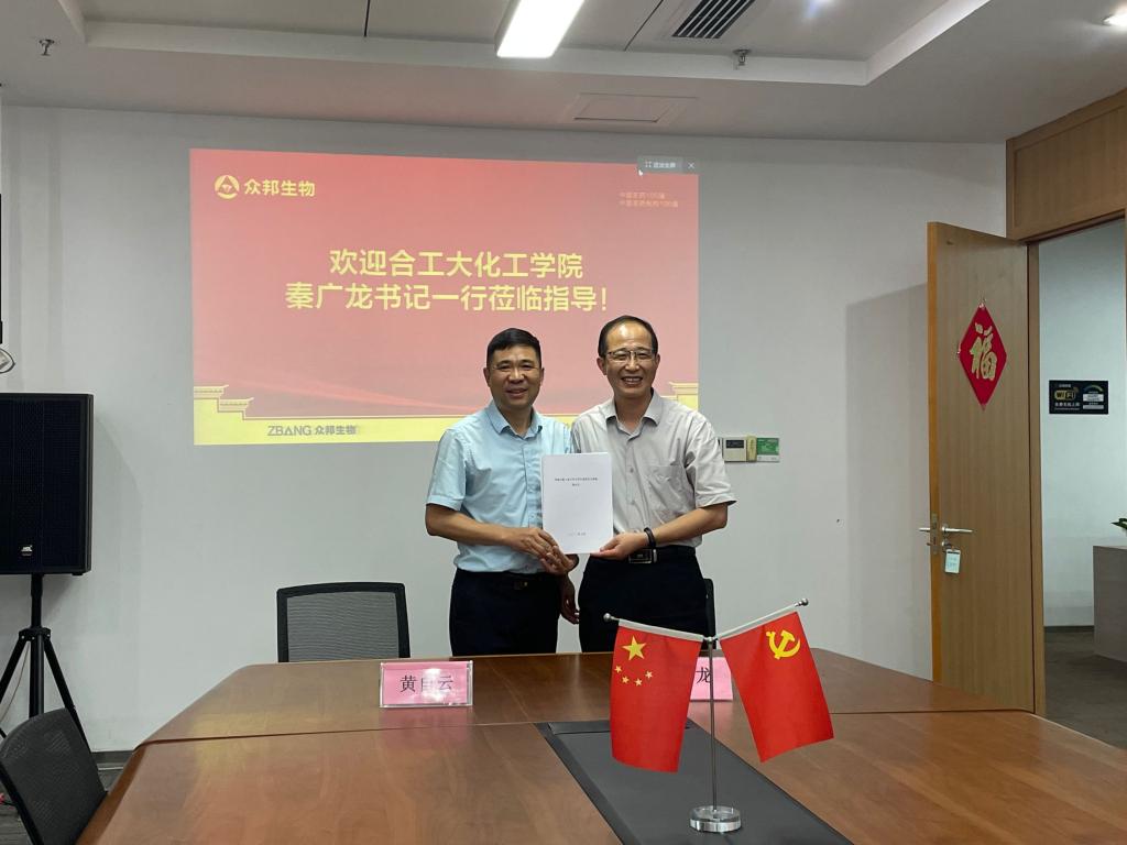 7月1日上午,3522vip浦京集团党委书记秦广龙、党委副书记兼纪委书记张金锋、科研副院长何涛率队赴安徽众邦生物工程有限公司开展访企拓岗活动。众邦生物董事长黄自云、总经理吴电亮、副总经理张建邦等出席活动。