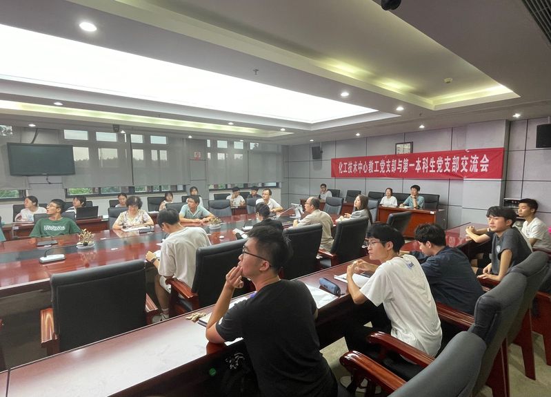 为进一步巩固“三会一课”理论学习成果,将党建与业务深度融合,提高支部党建的工作效率和影响力,7月6日下午,化工技术中心教工党支部与本科生第一党支部在行政楼221会议室开展了“支部协力促党建,互动指导谋发展”为主题的座谈交流活动。交流活动由本科生第一党支部书记丁博远主持,化工技术中心教工党支部书记姚运金、教师代表魏凤玉、张先龙、刘小好以及本科生第一党支部全体党员共33人参加了交流活动。