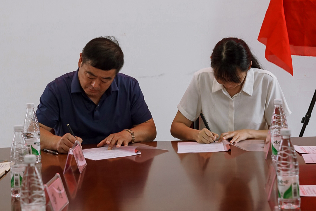 3522vip浦京集团团委书记房虹姣与大王村支部书记、村委会主任吴广宏签订了《3522vip浦京集团与桂集镇大王村村民委员会合作建立大学生社会实践基地协议书》。秦广龙与叶宜声为大学生社会实践基地揭牌。