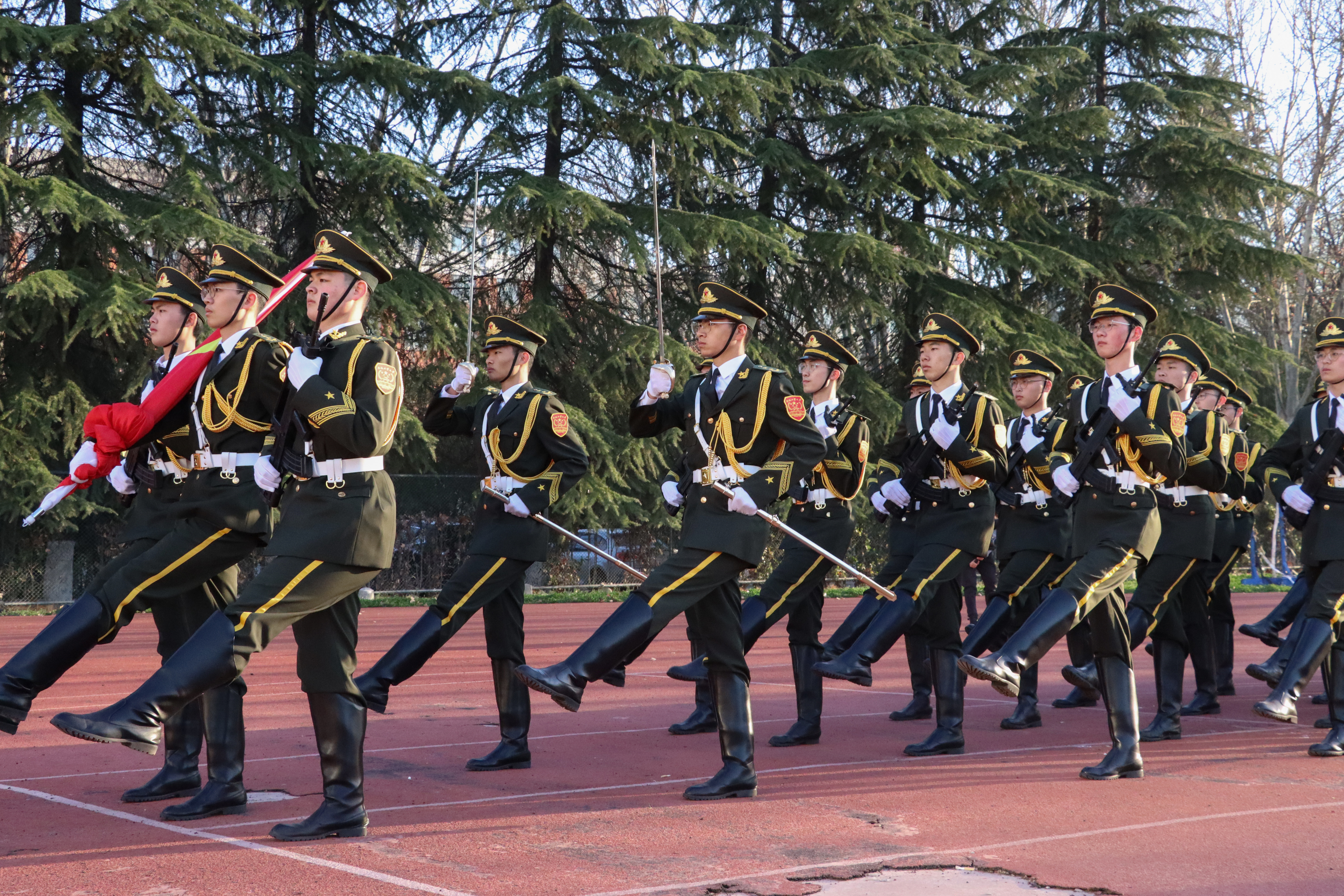 沐浴朝阳,英姿飒爽的国旗护卫队迈着铿锵的步伐,护送着五星红旗,走上升旗台。伴随着《义勇军进行曲》激昂的旋律,全体师生庄严肃立,向国旗行注目礼。同学们以饱满的姿态,高唱国歌,传达满腔爱国深情,矢志为中华民族伟大复兴奉献青春力量。