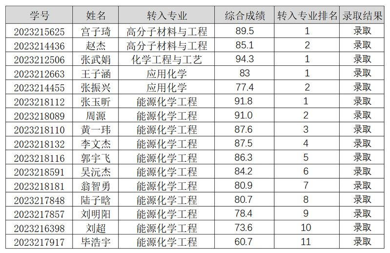 3522vip浦京集团2024年本科生校内转专业拟录取名单公示