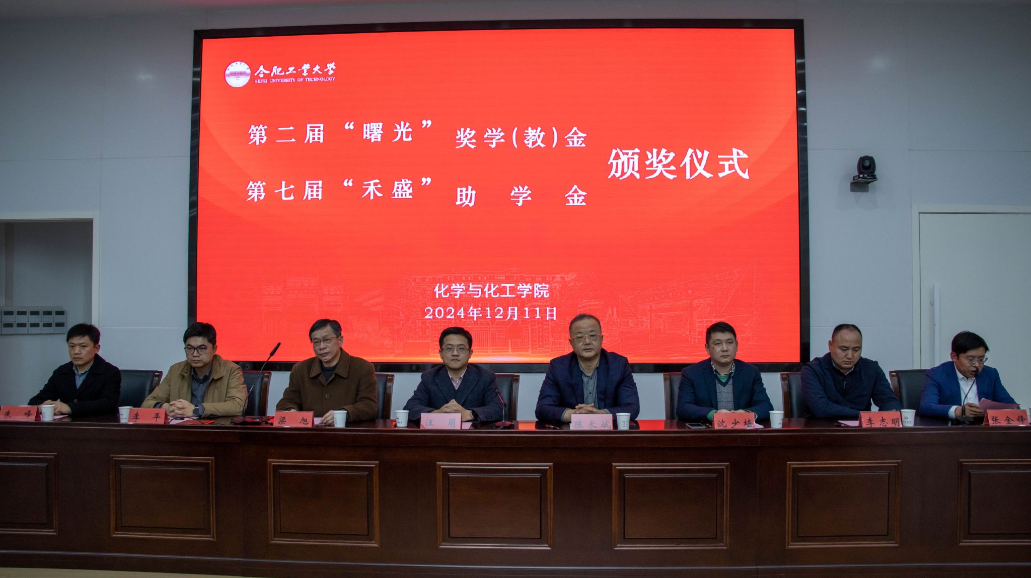 3522vip浦京集团第二届“曙光”奖学(教)金、第七届“禾盛助学金”颁奖仪式12月11日下午在校学术会议中心三楼报告厅举行。校党委常委、副校长汪萌,安徽曙光化工集团公司董事长陈长斌、总经理沈少培,合肥禾盛新型材料有限公司董事长梁旭出席仪式。