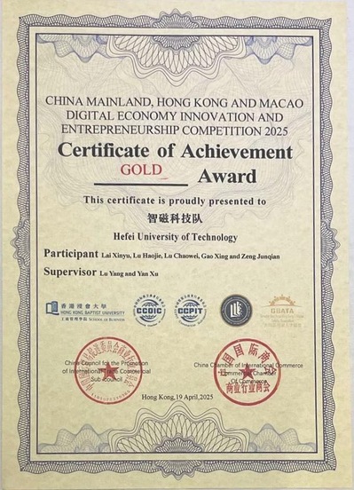 4月19日,由中国贸促会商业行业委员会和中国国际商会商业行业商会主办,香港浸会大学和(中国香港)科创教育协办,(中国香港)大湾区港澳人才协会支持的2025年内地与港澳地区数字经济创新创业竞赛在香港浸会大学成功举办,共有来自中国内地、中国香港和中国澳门的13所高校19支参赛队伍同台竞技。学院2024级研究生来欣宇担任队长的智磁科技团队获得2024年全国高校商业精英挑战赛精英奖受邀参加本次比赛,最终以亚军的成绩获得金奖。